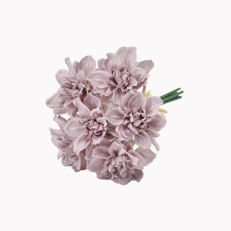 優しいモーブカラーのダリア。アーティフィシャルフラワーならではのデザイン性のあるくすみカラー。他の花やグリーンなどにも馴染みやすい色味で、アレンジメントにも使いやすいです。