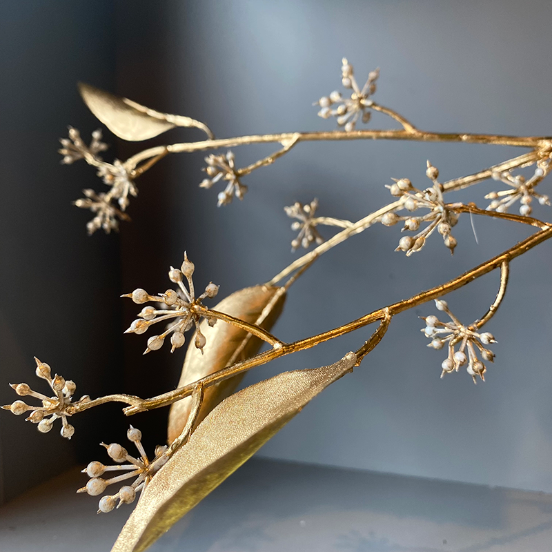 アーティフィシャルフラワーならではのメタリックカラーでデザインされています。クリスマスシーズンには華やかな装飾に、シーズン以外でもインテリアや他のフラワーとも馴染みやすくおすすめです。