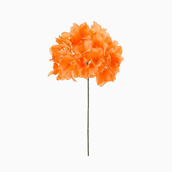 ビタミンカラーのオレンジハイドラアンジア。アーティフィシャルフラワーならではの、表情のある絶妙なグラデーションが楽しめます。他のフラワーやインテリアにも使いやすい味わいなので、幅広く使いやすいアイテムです。