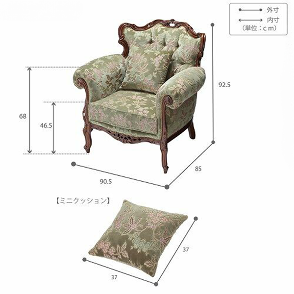 | サイズ(cm) | 【ソファ】W90.5×D85×H92.5cm/重量:約18.5kg 【ミニクッション】 W37×D37cm |