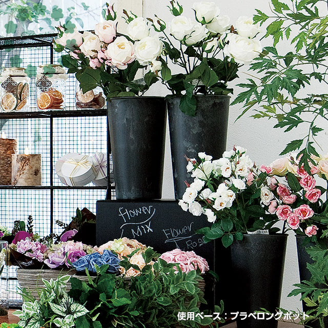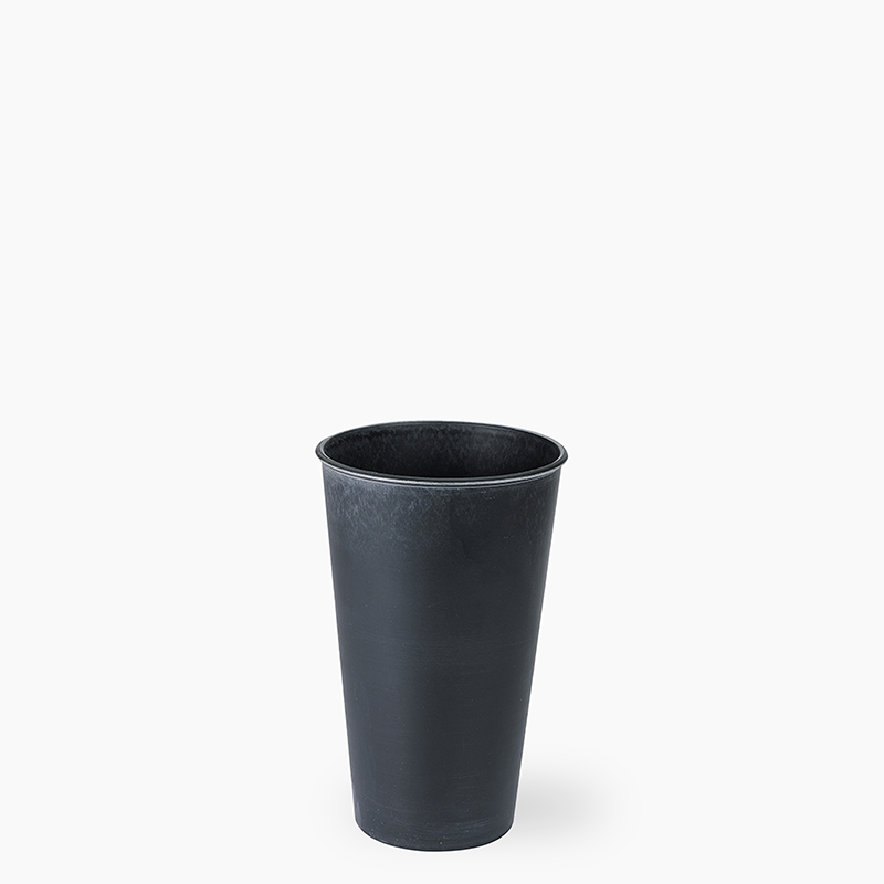 従来のプラスチック製品に比べ、石油由来樹脂の使用量を減らし環境負荷を軽減した商品です。自然な風合いを出すため、色ムラのある仕上げを施しています。 重さもあるため倒れにくいので店舗向けのフラワーベースとしておすすめです。