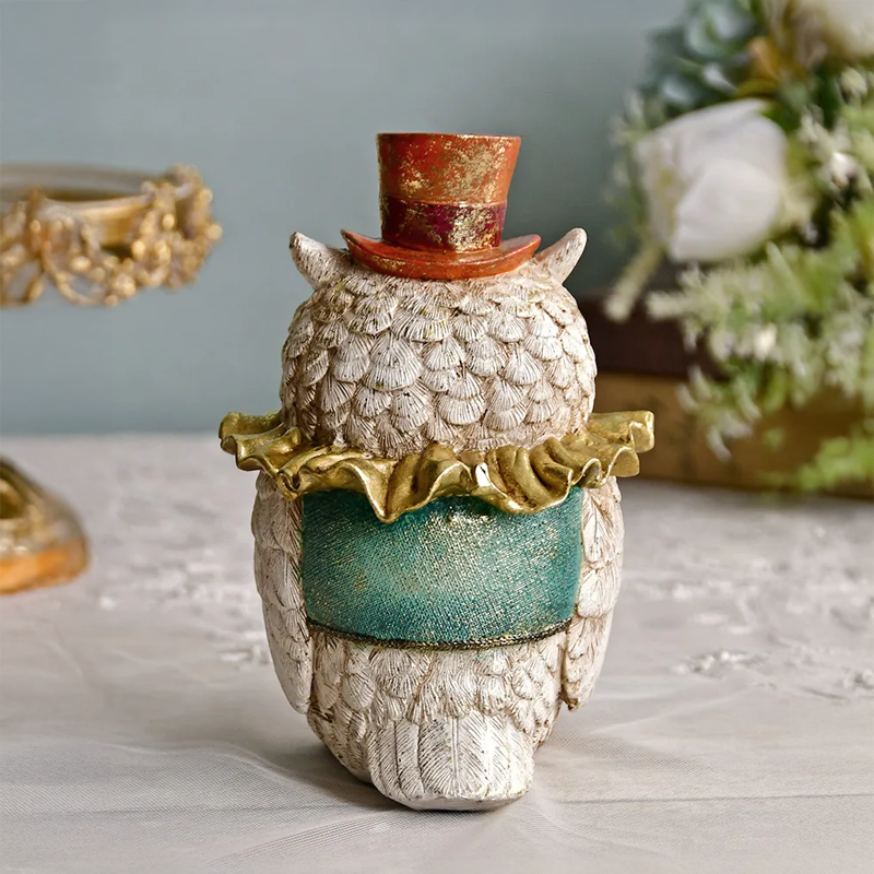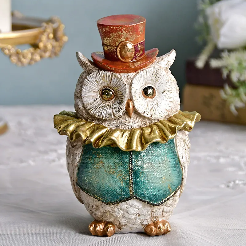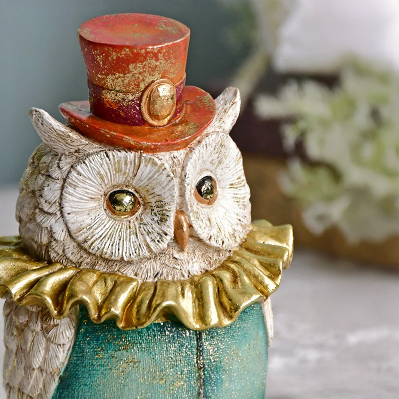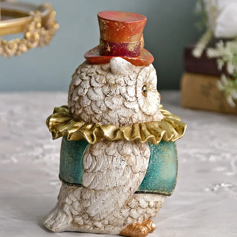 シックなカラーのフクロウオブジェ。貴族風のデザインで、部屋の雰囲気をグレードアップ。