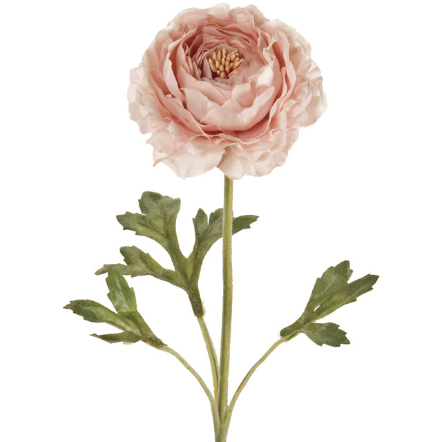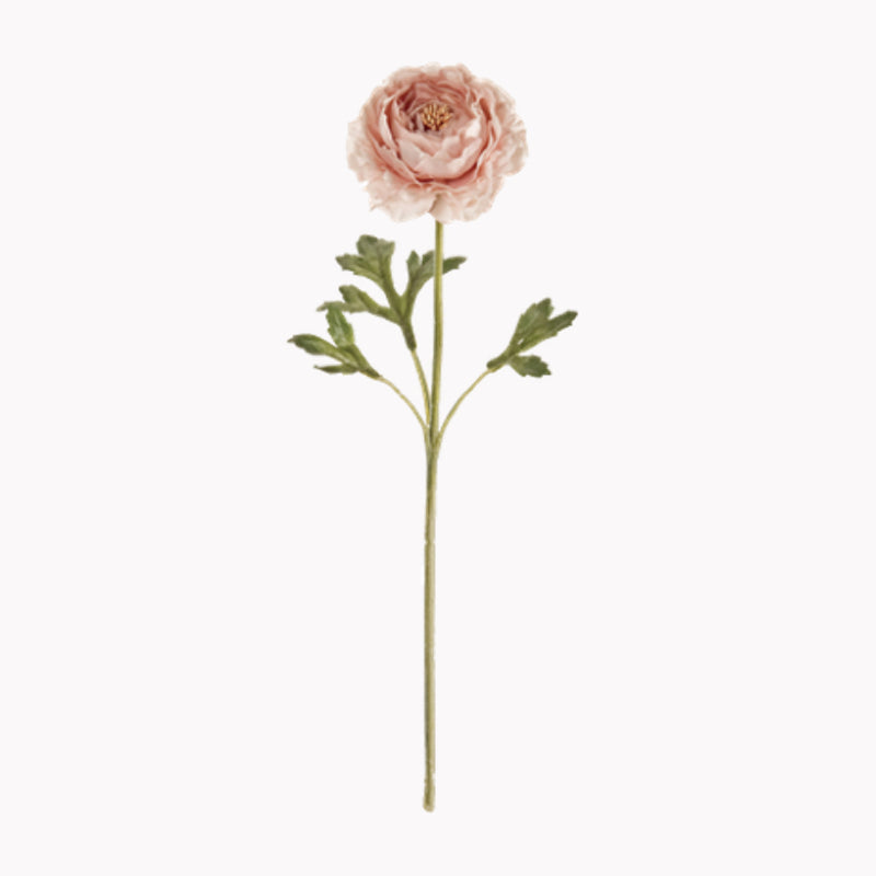 アンティークピンクのラナンキュラス。アーティフィシャルフラワーならではの細かいつくり込みで、花びらの絶妙な重なりまでリアルに再現されています。花束やアレンジメントに最適なサイズです。