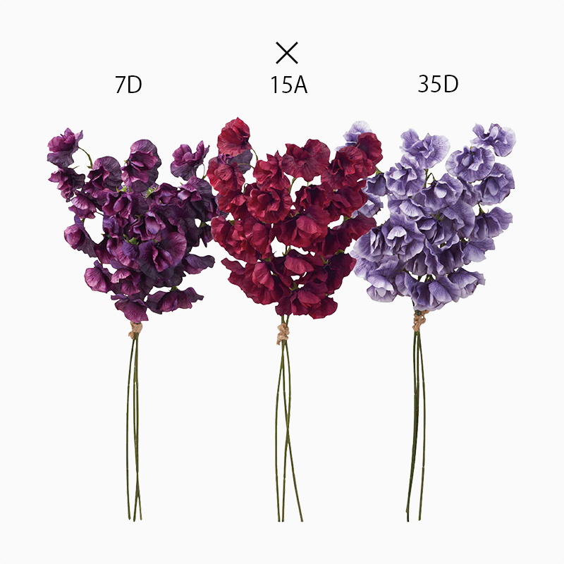 本物と見間違える間に作り込まれたスイトピー。シックなカラー展開なので落ち着いたアレンジメントや空間演出におすすめです。