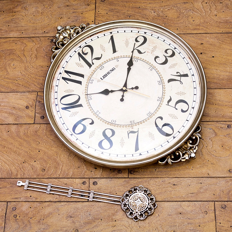 ノスタルジックな空間を演出!振子壁掛け時計。 英国アンティーク風のデザインが魅力の壁掛け振り子時計。ゴージャスな装飾が施された文字盤と、優雅に揺れる振り子が、お部屋に高級感をプラスします。