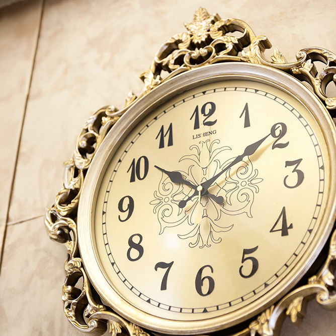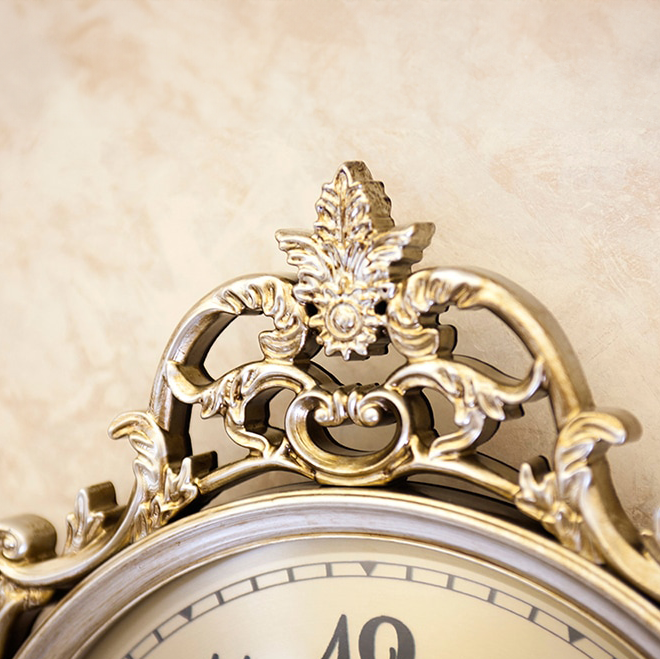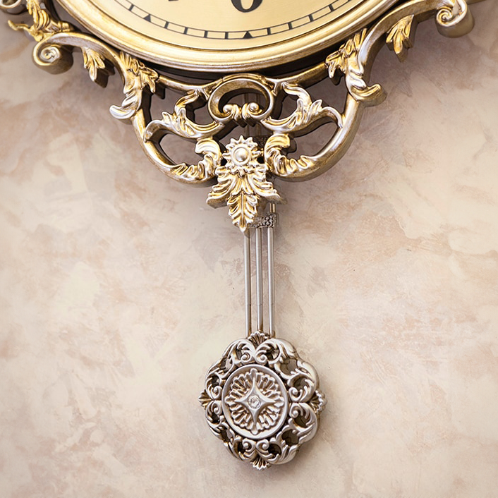 優美なデザインが魅力のビクトリアン調壁掛け振り子時計。細部まで丁寧に施された装飾がクラシカルな雰囲気を醸し出し、空間を格調高く彩ります。